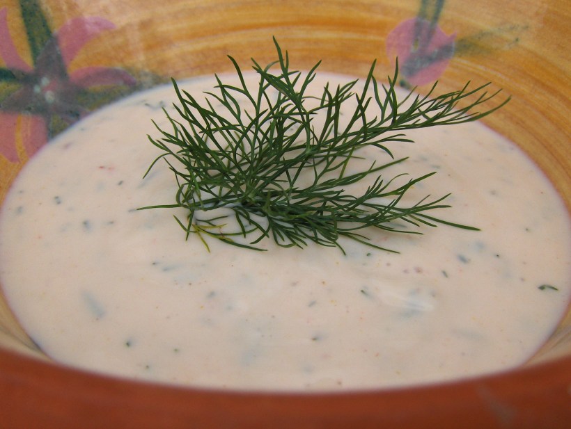 Enig Luna…..en discountudgave hedder soyayoghurt, noget hvidløg og en klat karrypaste…..har jeg før misbrugt,,,heh 🙂
