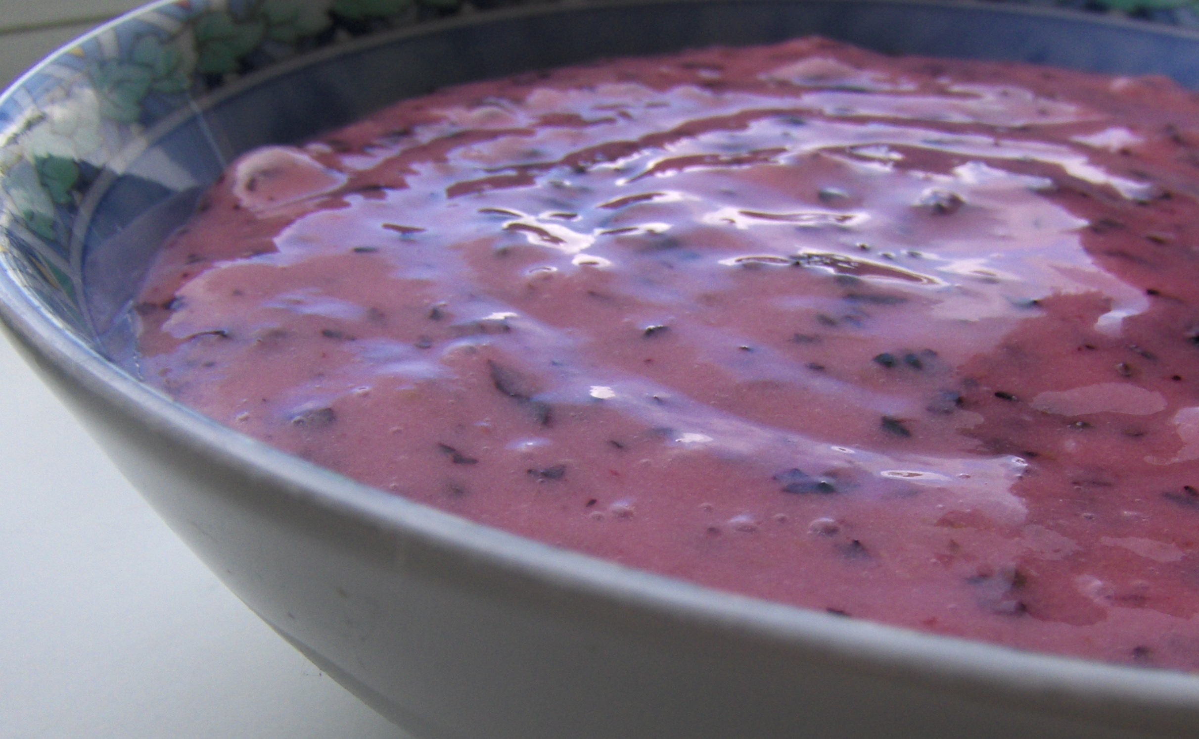 Spises på en varm sommerdag hen over en skål soja is med vanilje. Eller som herover – en skål jordbær sorbet!