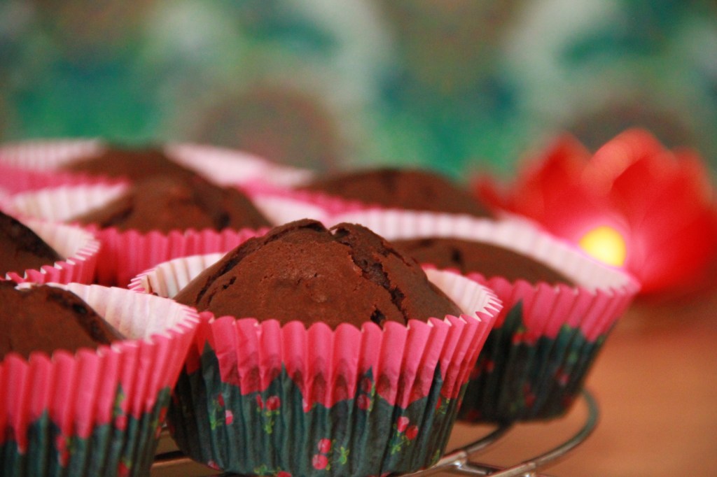 - Rør det hele godt sammen og kom dejen i en muffinform beklædt med papirsforme – fyld dem ca. halvt op.