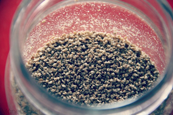 Sesamfrøene ristes på en tør pande til de er gyldne og stødes derefter let i en morter. (Jeg plejer dog at bruge en stavblender.) Tilsæt havsalt efter smag og gem goma’en i en lille dåse eller beholder – klar til brug!
