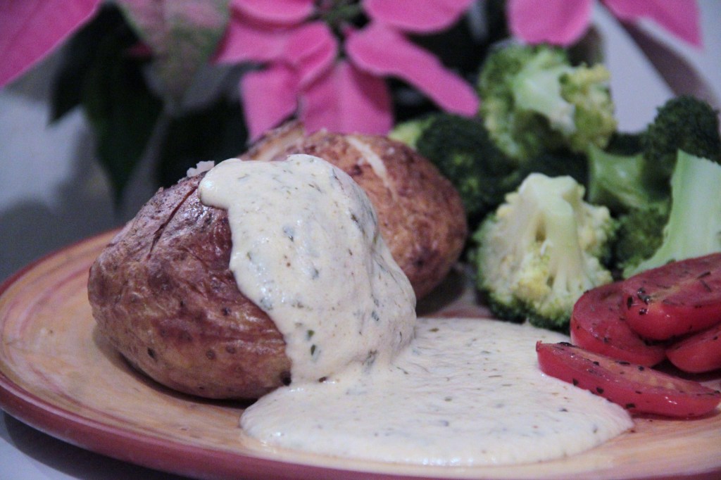 - Til sidst tilsættes plantefløden, og retten er klar til servering.
